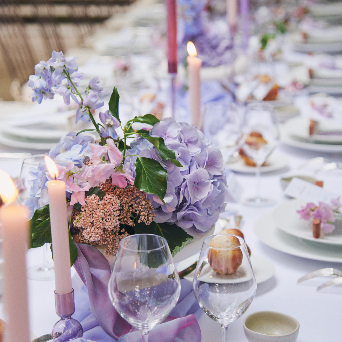 For the launch of the new Vacheron Constantin women’s watch and perfume, Studio Finders was invited to design an elegant dinner dedicated entirely to a lilac monochrome theme, echoing the aesthetics of the Pleats of Time collection.